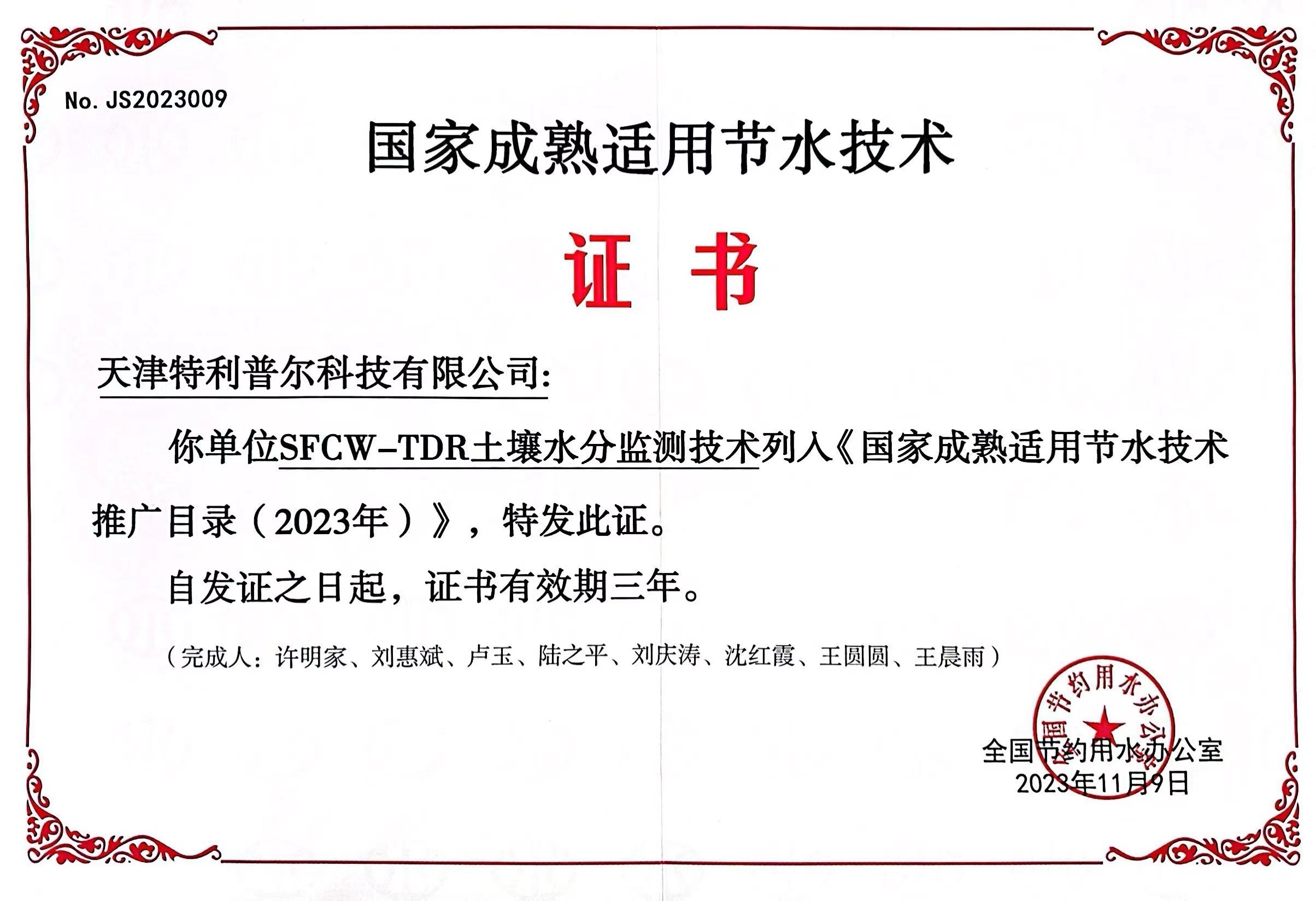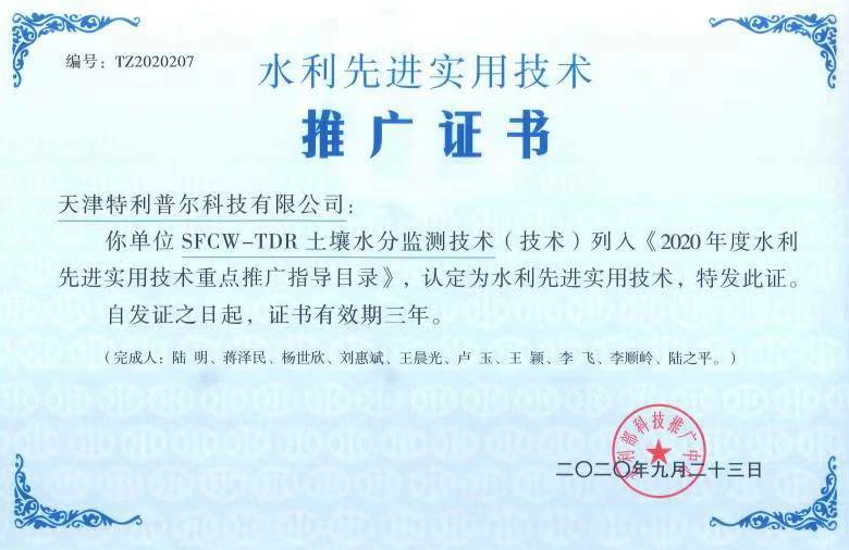 水利先进实用技术推广证书